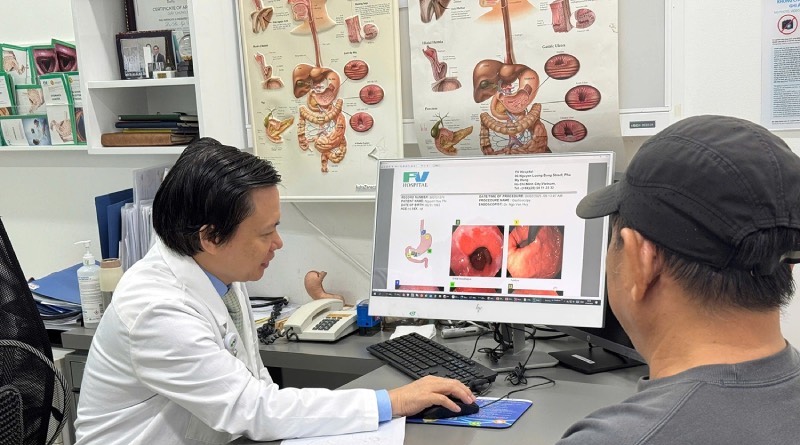 Bác sĩ Ngô Văn Huy, Phó khoa Tiêu hóa & Gan-Mật tại Bệnh viện FV, đã xác định ông P. mắc trào ngược dạ dày kèm theo hở van tâm vị (độ 3-4). Nguy hiểm hơn, ông còn bị Barrett thực quản – một tổn thương tiền ung thư thực quản do trào ngược dạ dày kéo dài.
